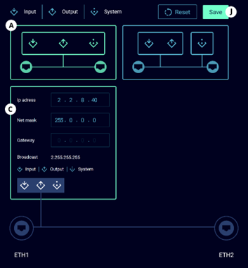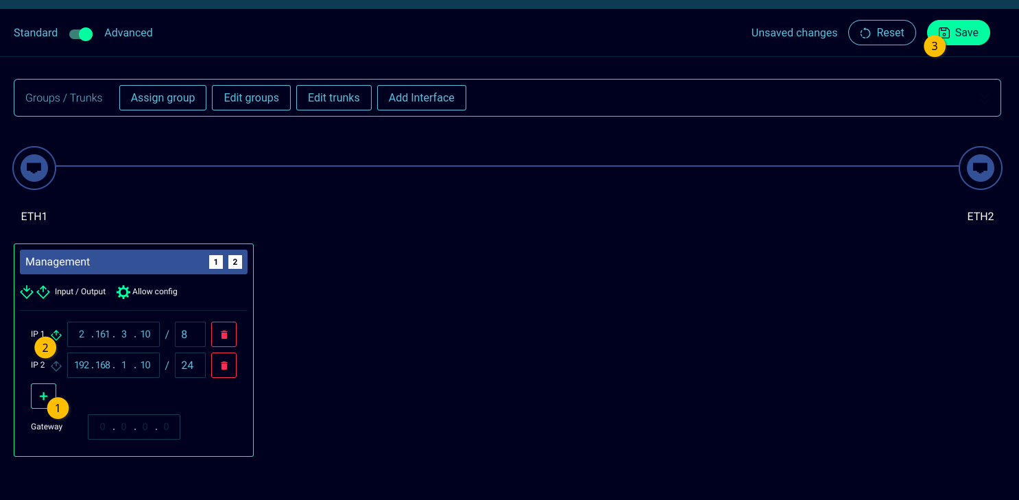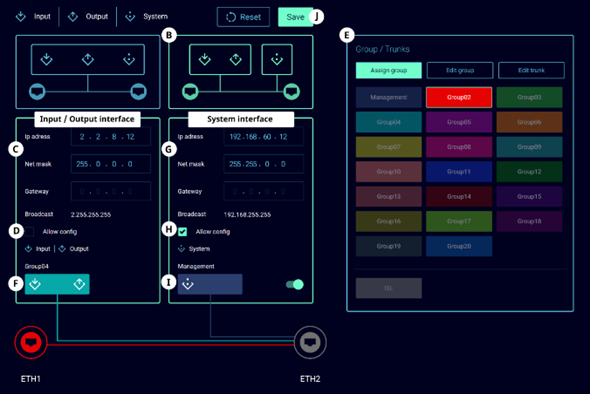 input/output interface. Finally, we assigned group 2 to ETH1 to give the user